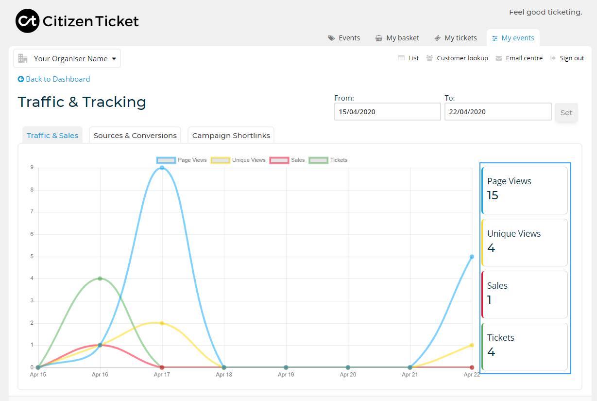 You can cross-check when a piece of marketing activity went out and if it generated traffic to your event page, helping you figure what works.