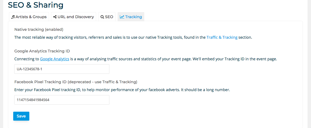In addition you can connect to Google Analytics, another tool to track the success of your event page reach and user engagement.