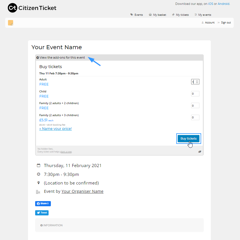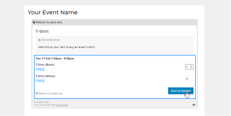 Click 'Save' and then it's done! The customer will now see the "add ons" when they go to purchase tickets to your main even (and fingers crossed they purchase them too).